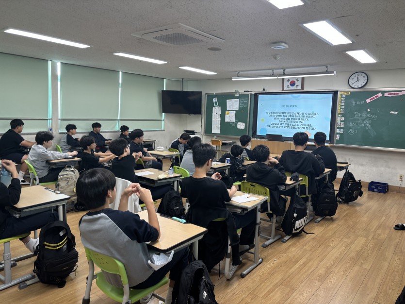 운동중학교 학생들 대상으로 모두가 안전하고 행복한 환경을 만들고자 학교폭력 예방 교육을 진행하였습니다.